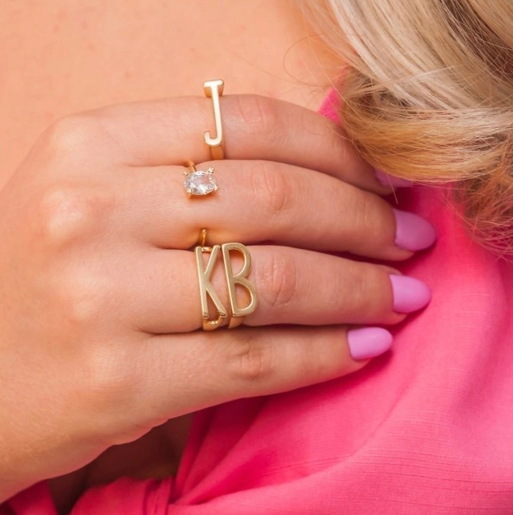 Anel Letra Liso Ajustável com Banho em Ouro 18k